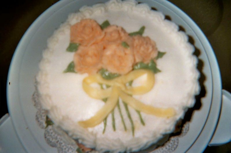 My first cake at the end of the first cake decorating course is right here. It’s not terrible; there were others that were far worse! And hey, it tastes good and that’s what cake is all about.