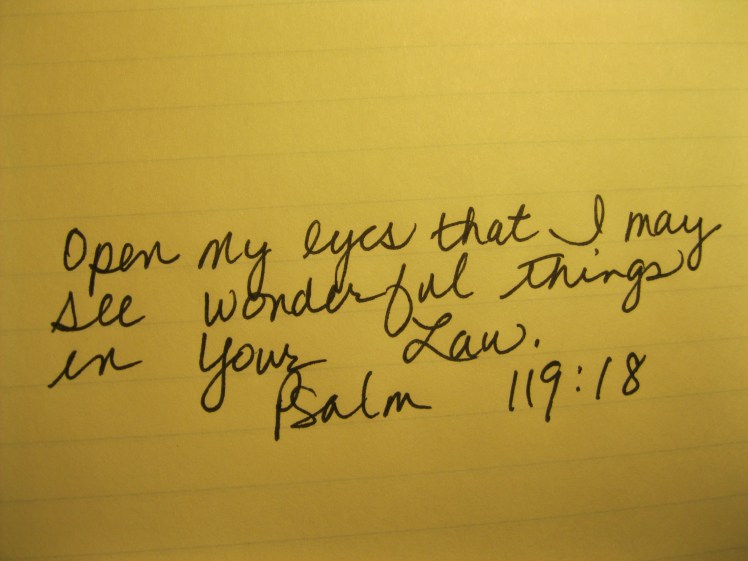 The above scripture popped up a lot last week. It talks about learning about the Word of course, but I also noticed: open my eyes to see what’s going on around me.