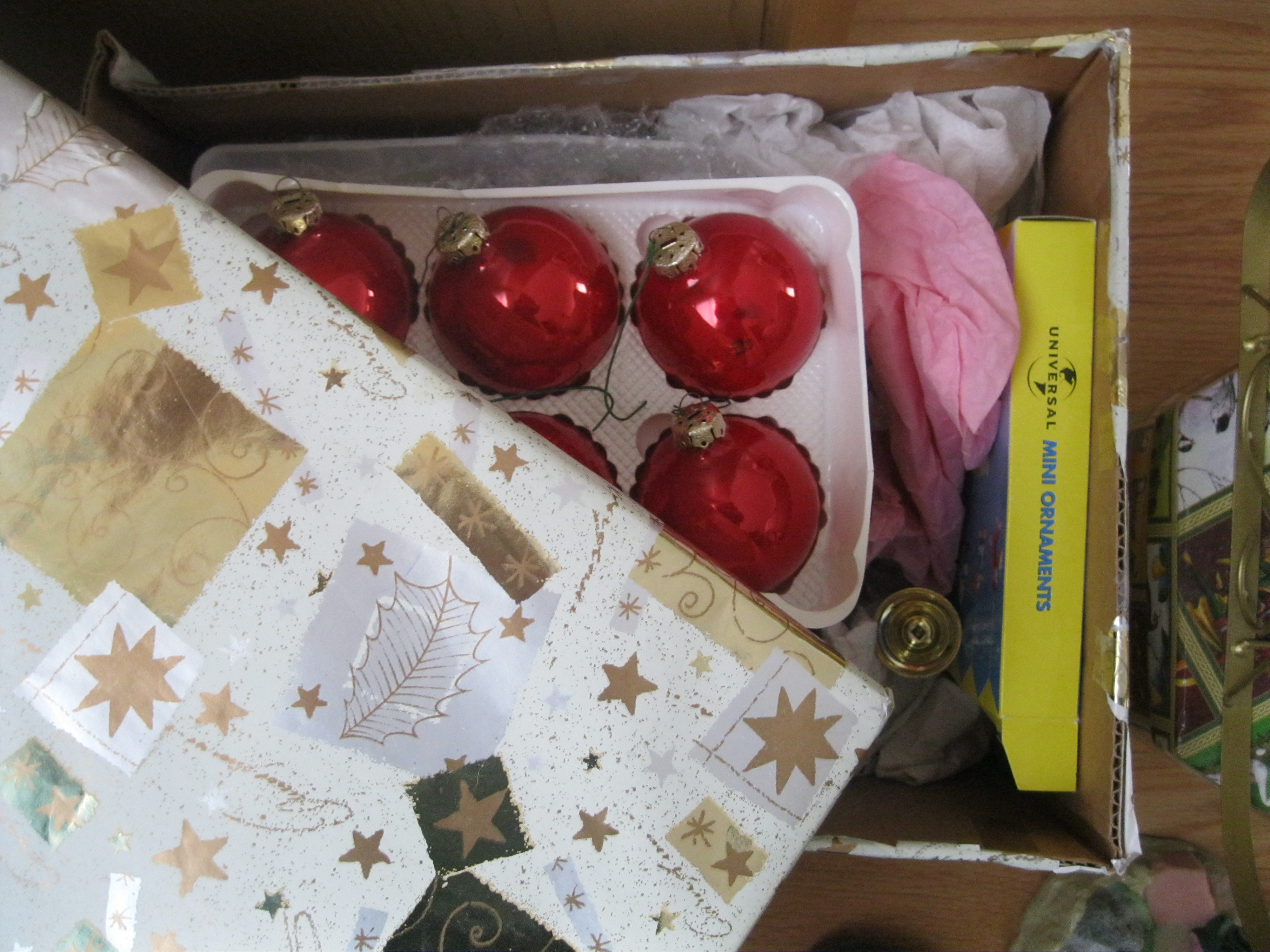 CHRISTMAS DECORATIONS. While putting away the ornaments, I am not able to smush them back into the packages that they originally came in. I do not have a degree in Packaging Engineering, so I grab some paper towels, wrap them loosely, and throw them into any old Amazon box. (There’s usually an abundance of those lying around the house, thankfully.)