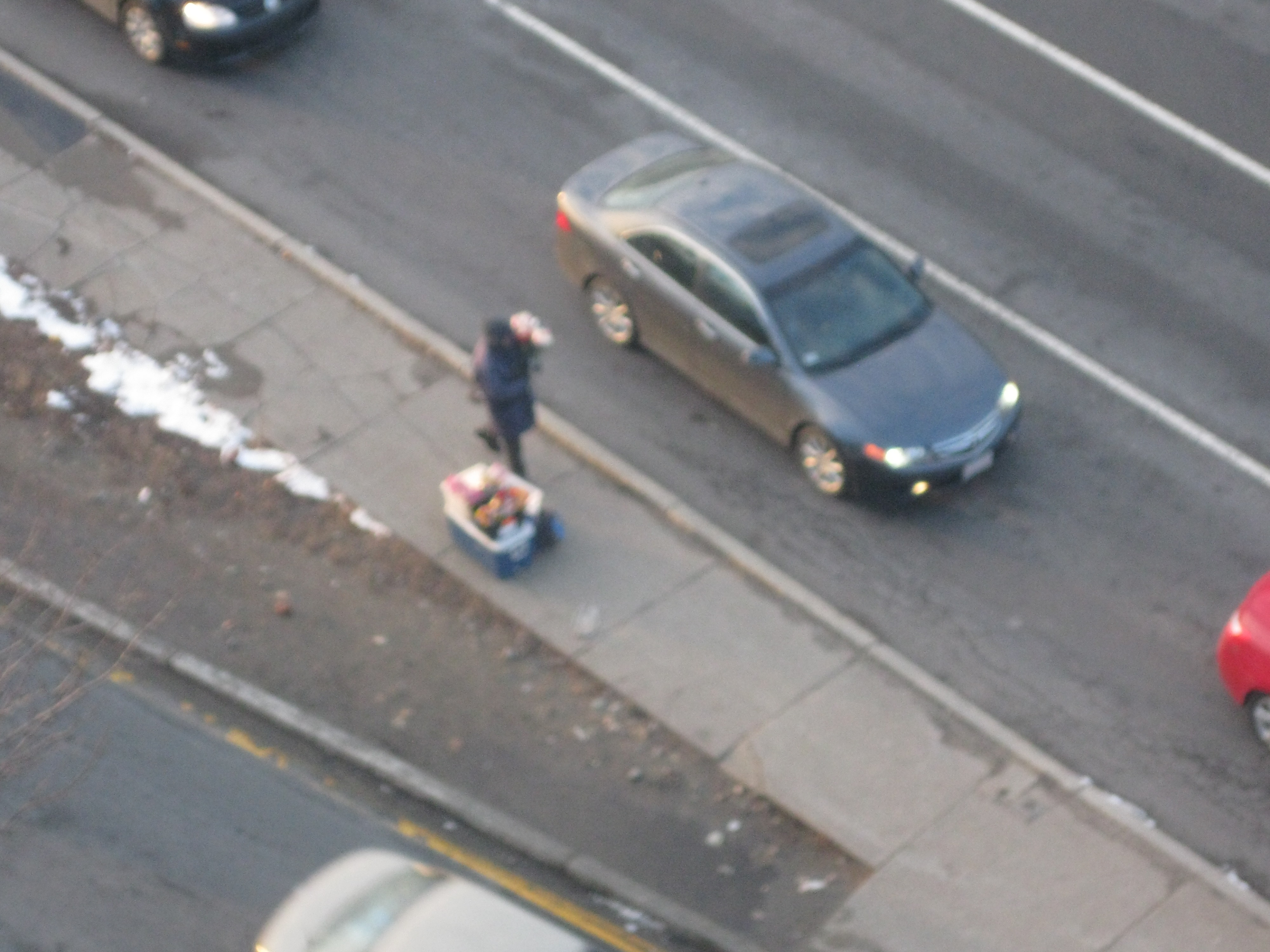 For hours, this man walked back and forth showing his flowers to passing motorists, most of whom ignored him. His companion looked to be holding a cardboard sign of some kind, I’m guessing it told the price of the flowers.