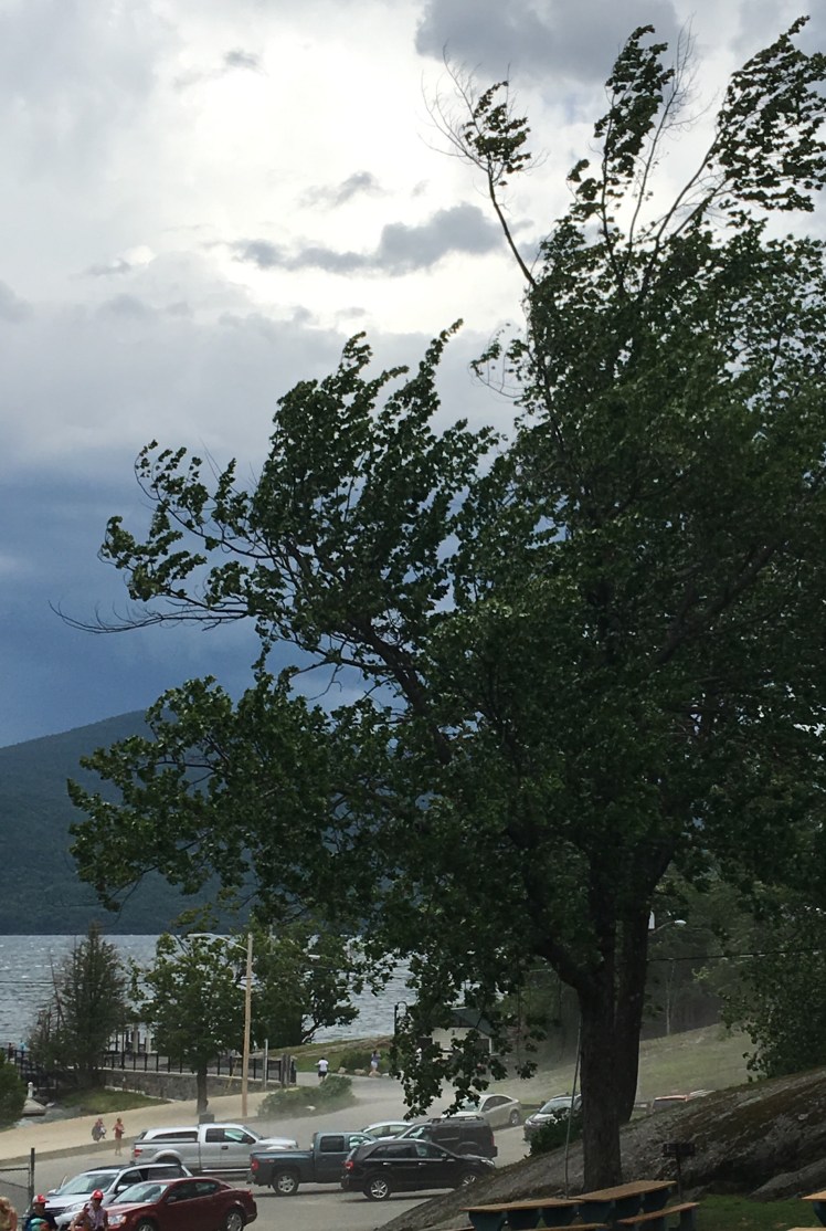 On the Lower Left side of this picture, you can see the sand from the beach area blowing around.   Check out the top of this tree.  A strong wind blows the top branches.