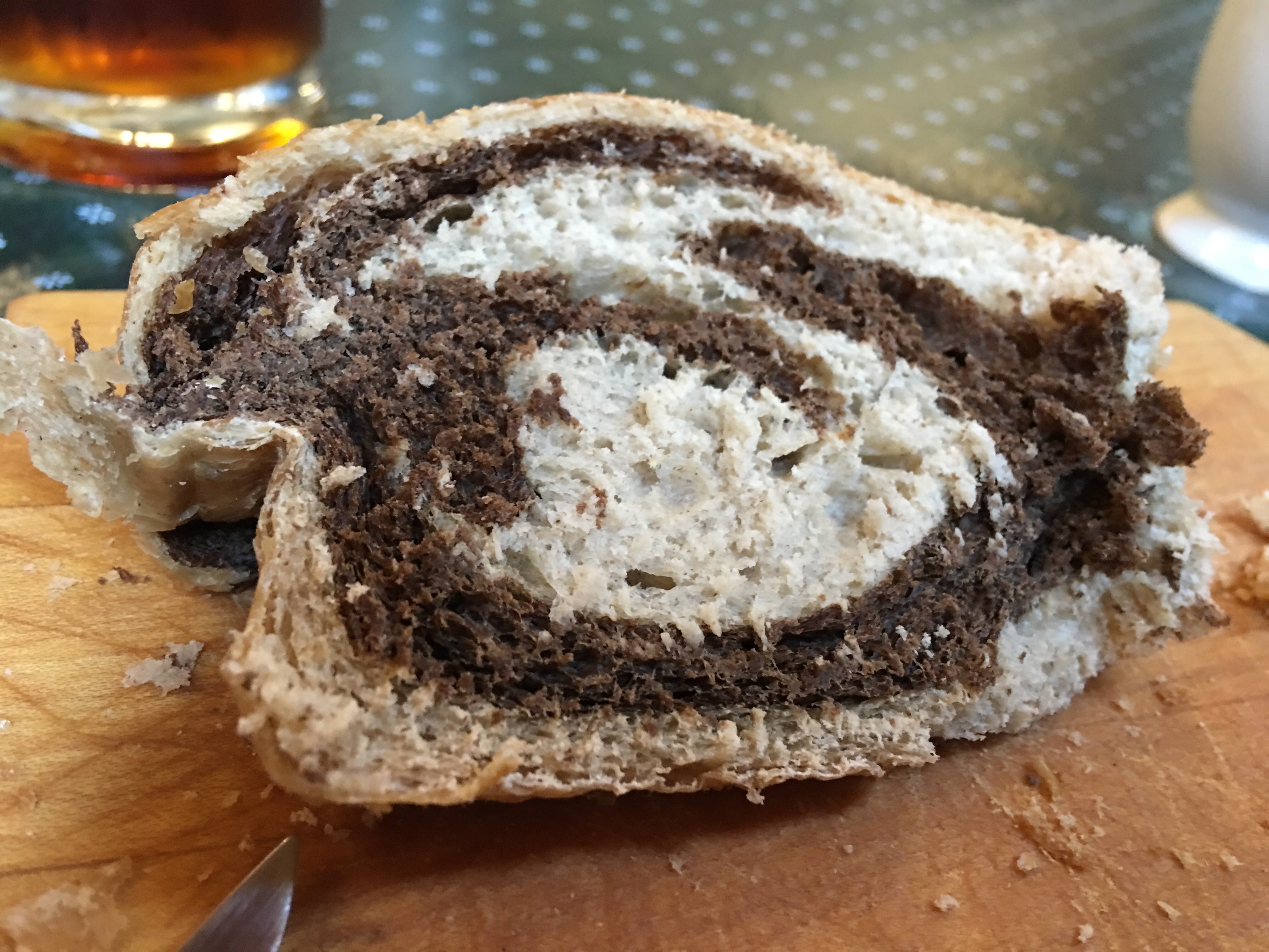 We proceeded to the car, and drove down to the German restaurant where we enjoyed the Marble Rye. As usual we filled up on the salad bar and bread, so by the time the entrees showed up, we were full. So we had German food for lunch the next day.