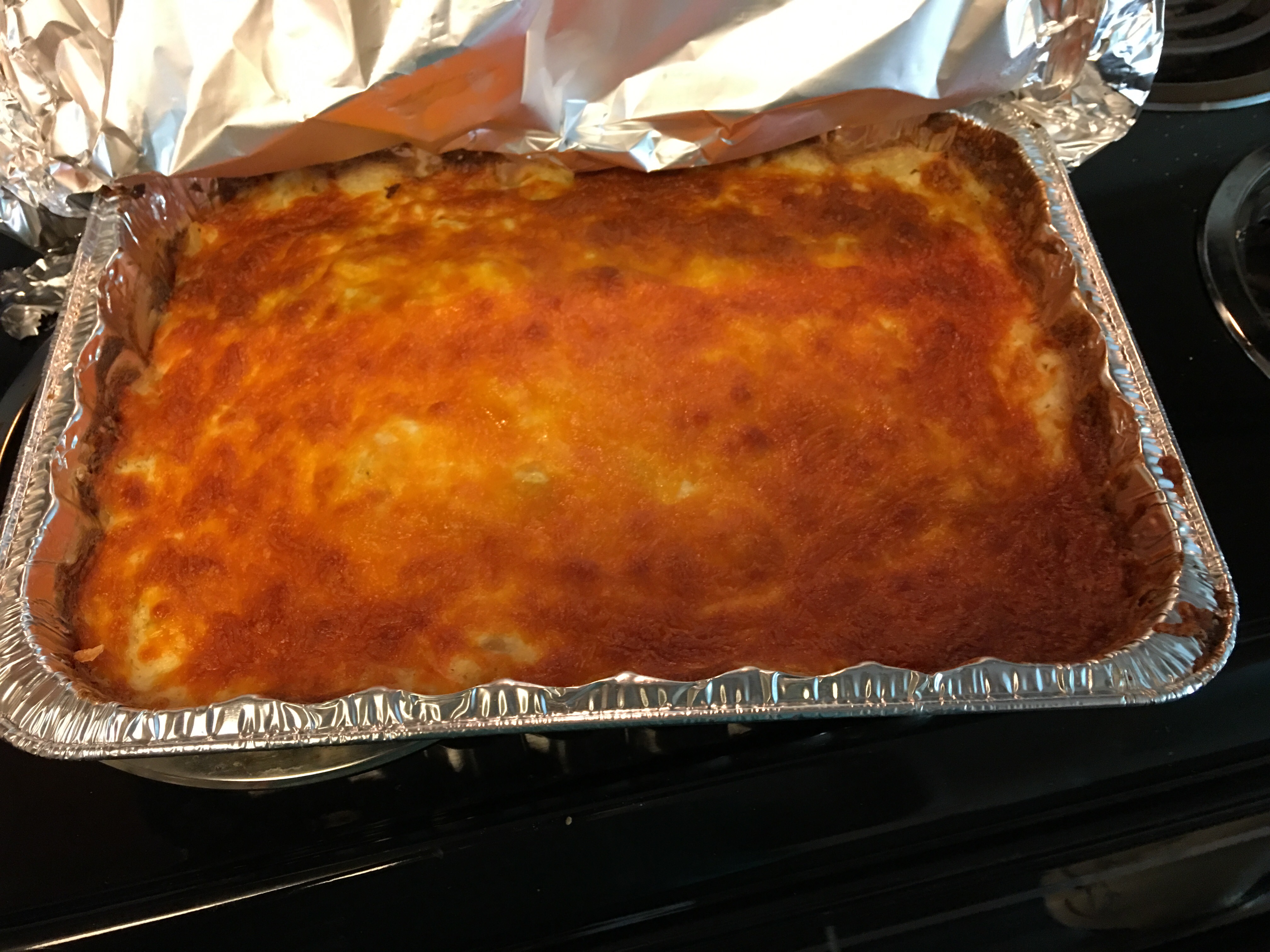 Well long story short,I made the recipe early this morning without being sufficiently caffeinated. I decided to skip the crumbs on top that I was supposed to mix with the cheese, because I have friends who go gluten-free and thought this would help by leaving off the glutenous crumbs.