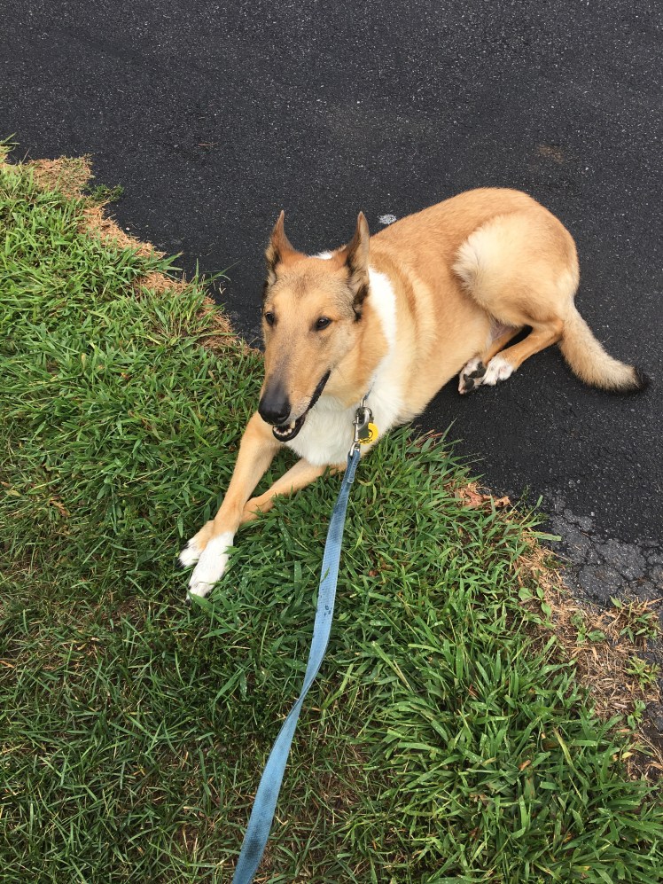 I went with my neighbor today to take Bailey and Zeva for a walk. A white truck stopped by the side of the road. I thought he was going to ask us for directions. He backed up the truck and kept going, right past us. He got out, ran into the road, picked up a large board and put it into the truck bed. Whoops, it must have fallen out.