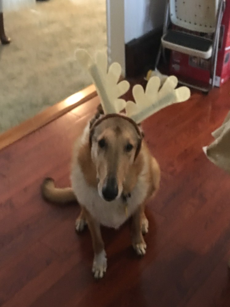 Bailey doesn’t appreciate being dressed in antlers, but it amuses me.