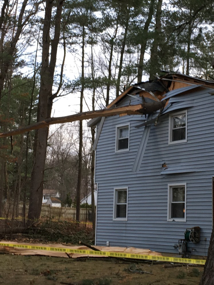 BOOM.  Mr. Porter woke up, but I didn’t, when a tree crashed down on our neighbors’ house. The tree landed inside one of the bedrooms. How would you like to wake up with a tree sticking out of your house? I am happy to report no one was in the room at the time that the tree split and cut through their roof. No one was hurt.