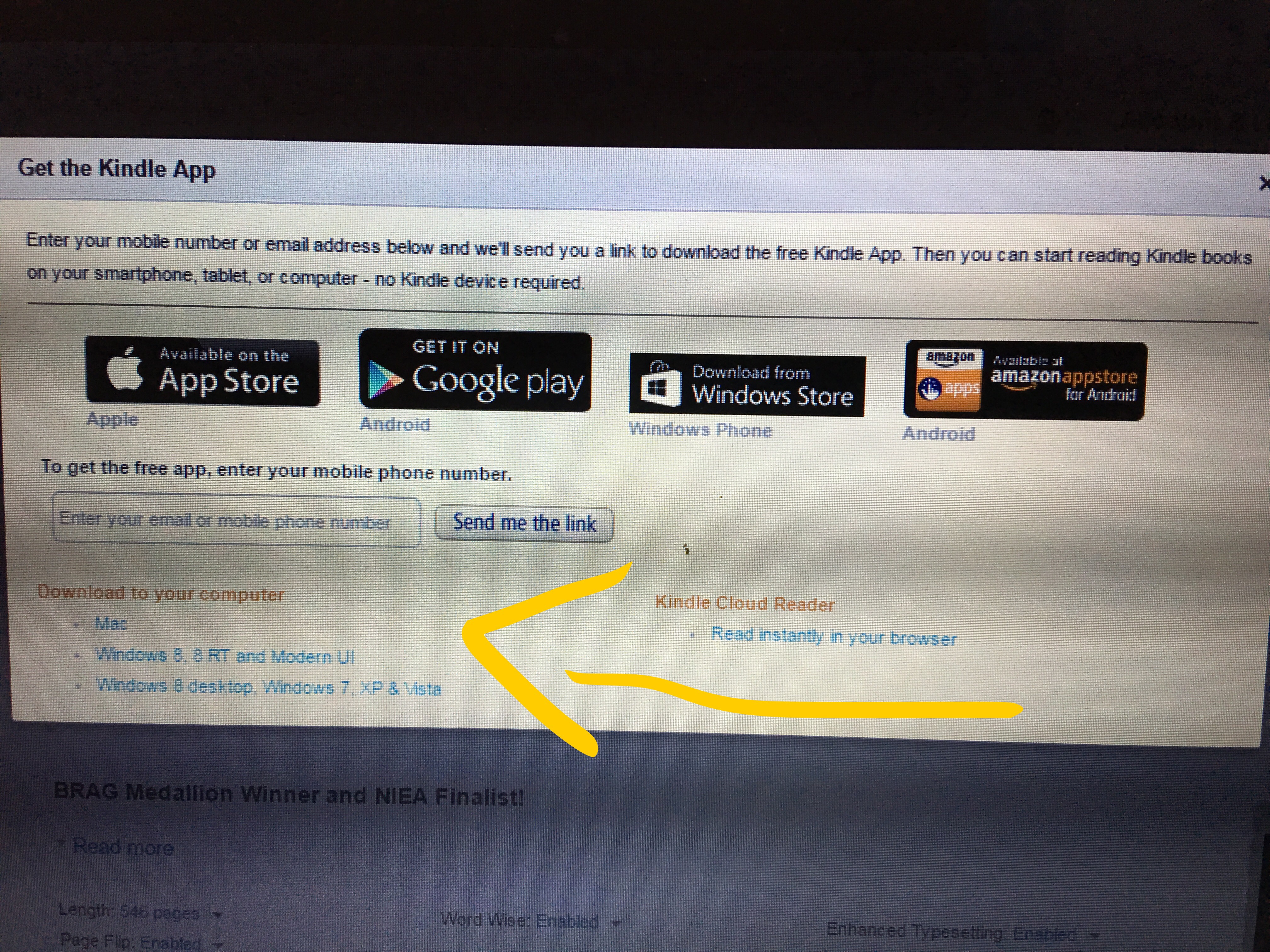 This will allow you to download the app and read the book on your phone.