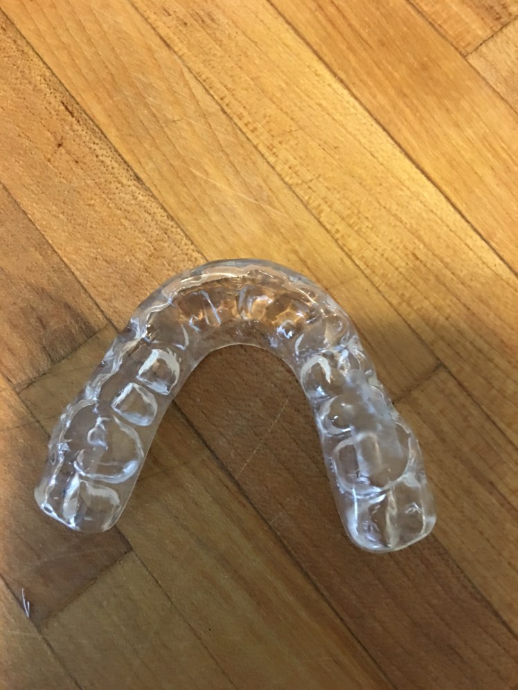 It’s a night guard for my teeth, because apparently I grind my teeth in my sleep. I don’t remember grinding, but I do wake up with a sore mouth. Also, by looking at my dental x-rays, it was determined that the right side of my mouth is “filed down.”