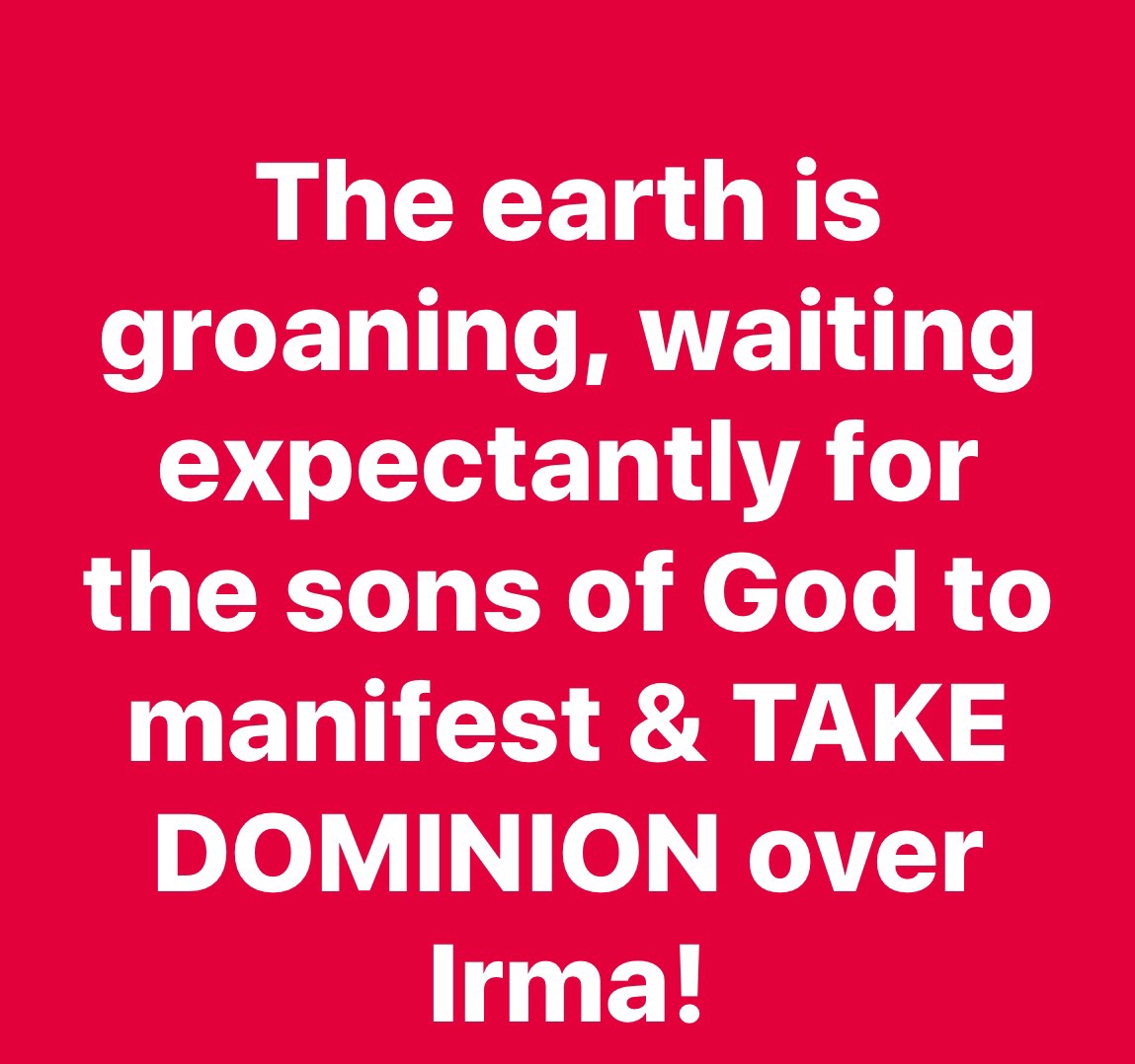 With Irma being the topic of discussion, there is much infighting in the body of Christ as to whose job it is to speak against this storm. Some say only God has the power to calm the storm, and we should just pray and ask Him to stop it.