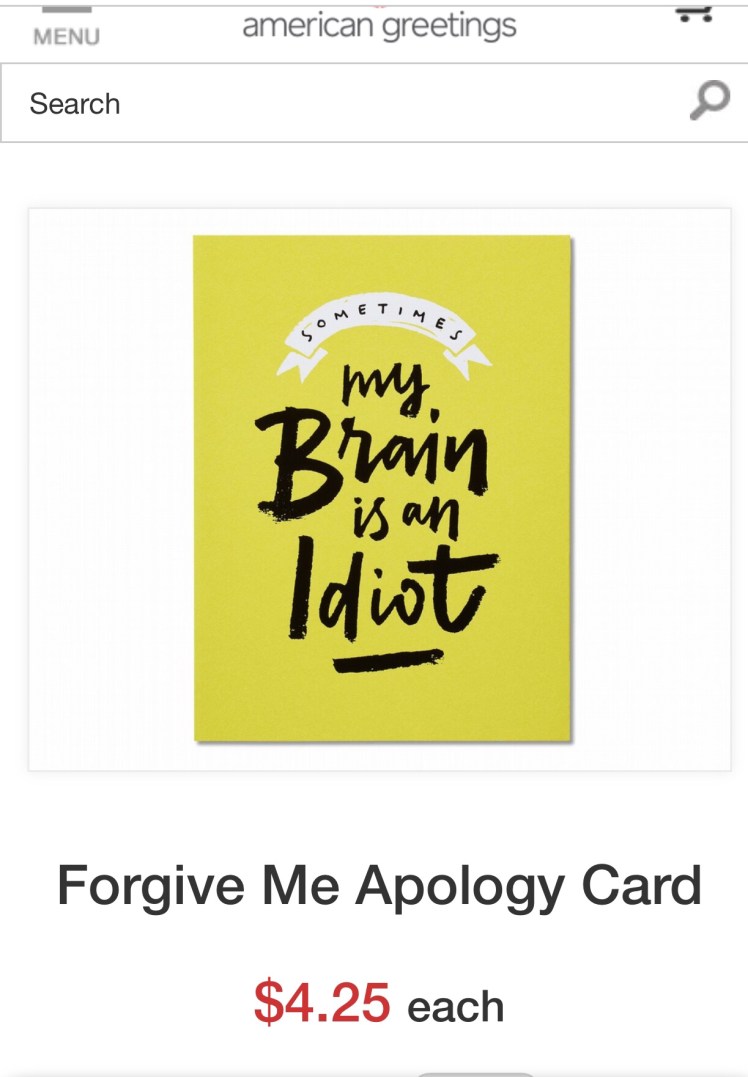 okay, so it’s not specific to Christmas but “I’m sorry” cards are a thriving business. Finally, cards for real people.
