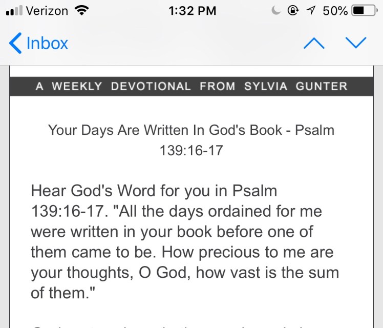 Anywho, Today I received an email starting out with a different part of Psalm 139: